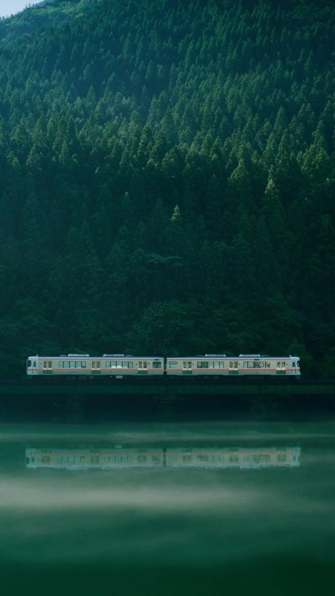 Aerial view of Tadami line - A beautiful autumn landscape, Tadami railway line and Tadami river in morning warm sunlight of autumn, Fukushima, Japan.